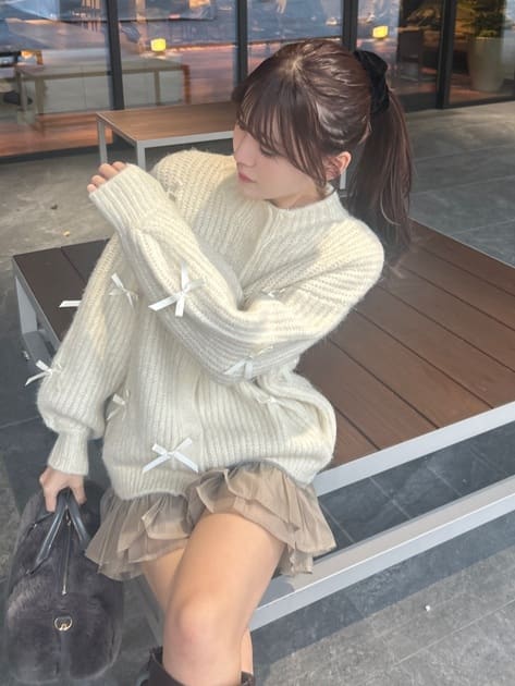 MOUSSY特惠款蝴蝶結甜美毛衣外套(數量少少)