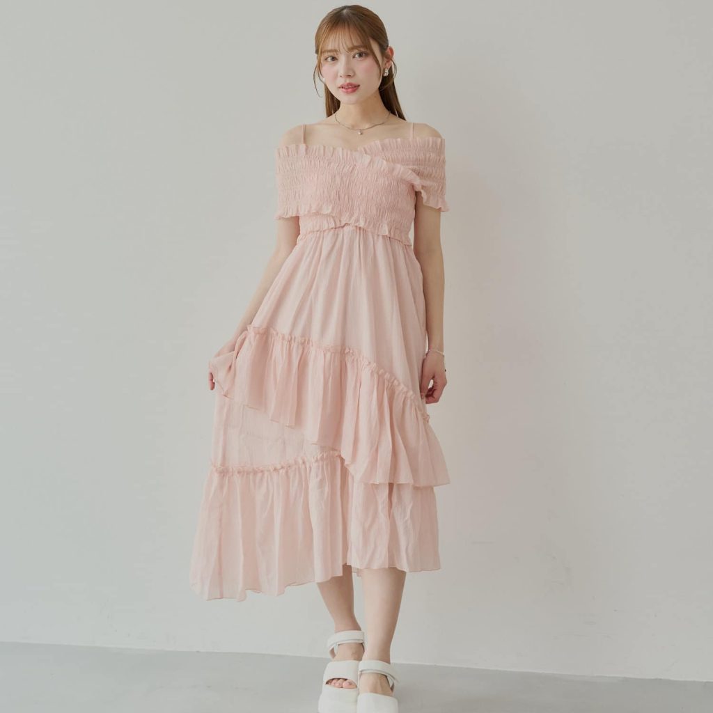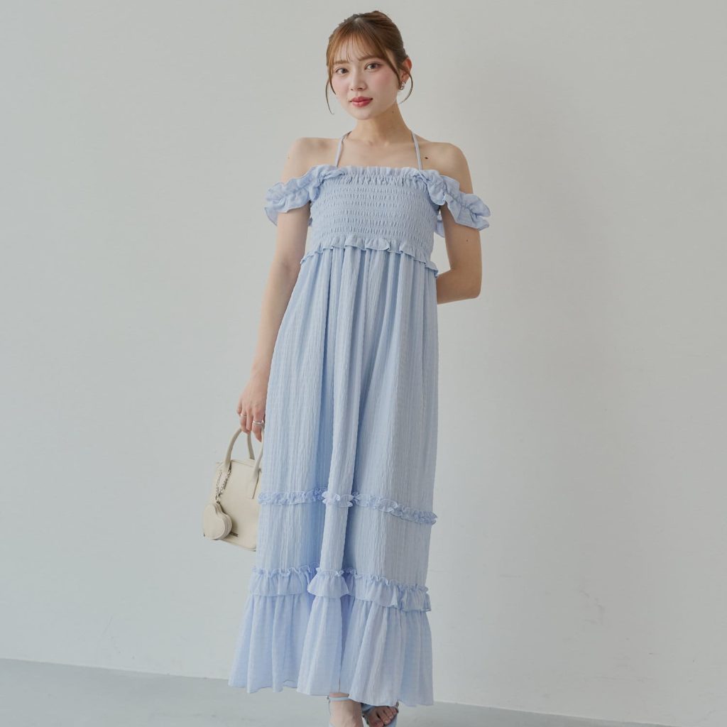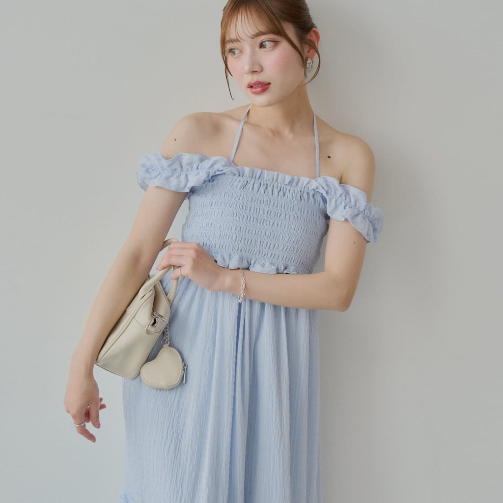 Chico換季6折無袖露肩多種穿法微皺感長版洋裝