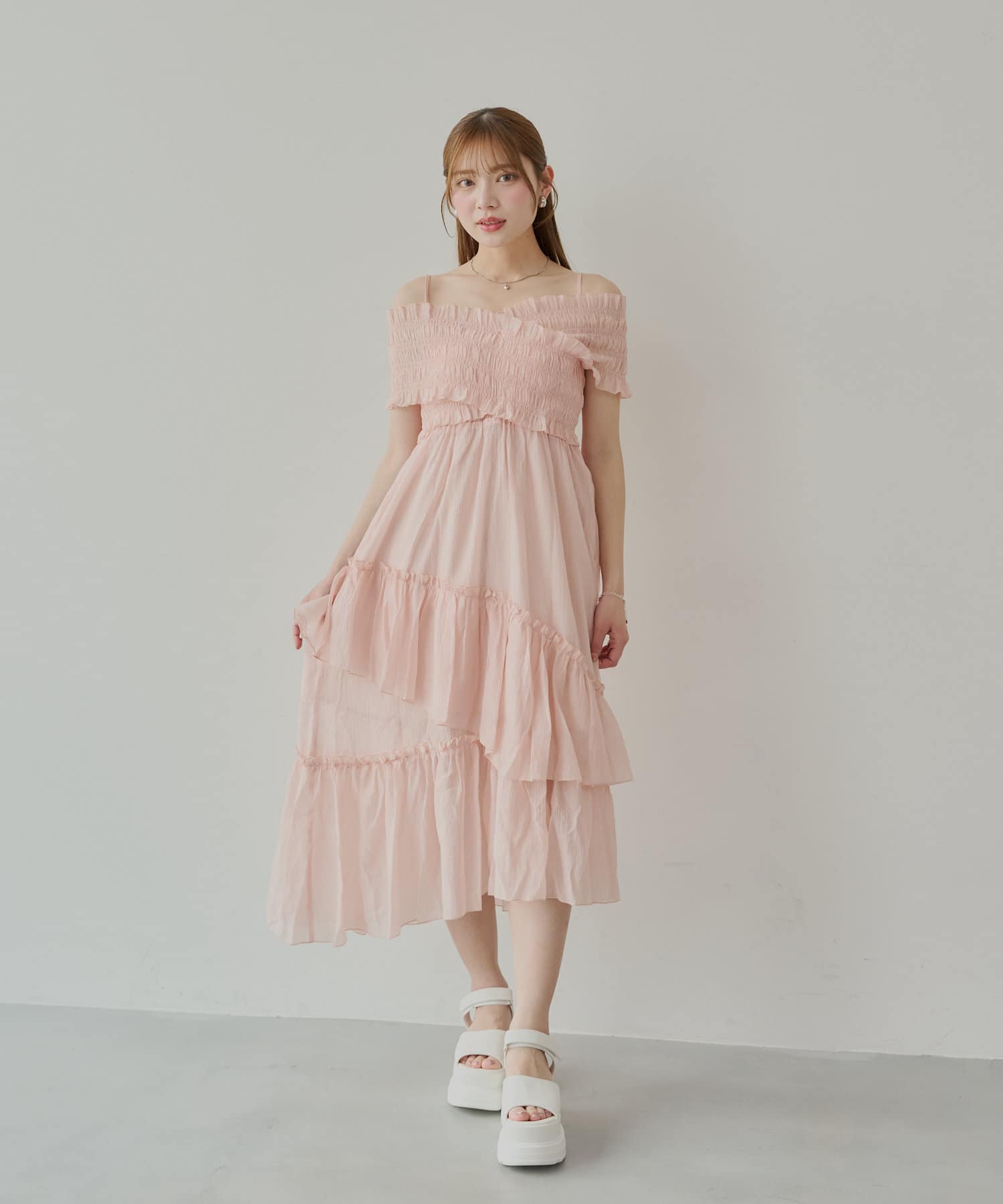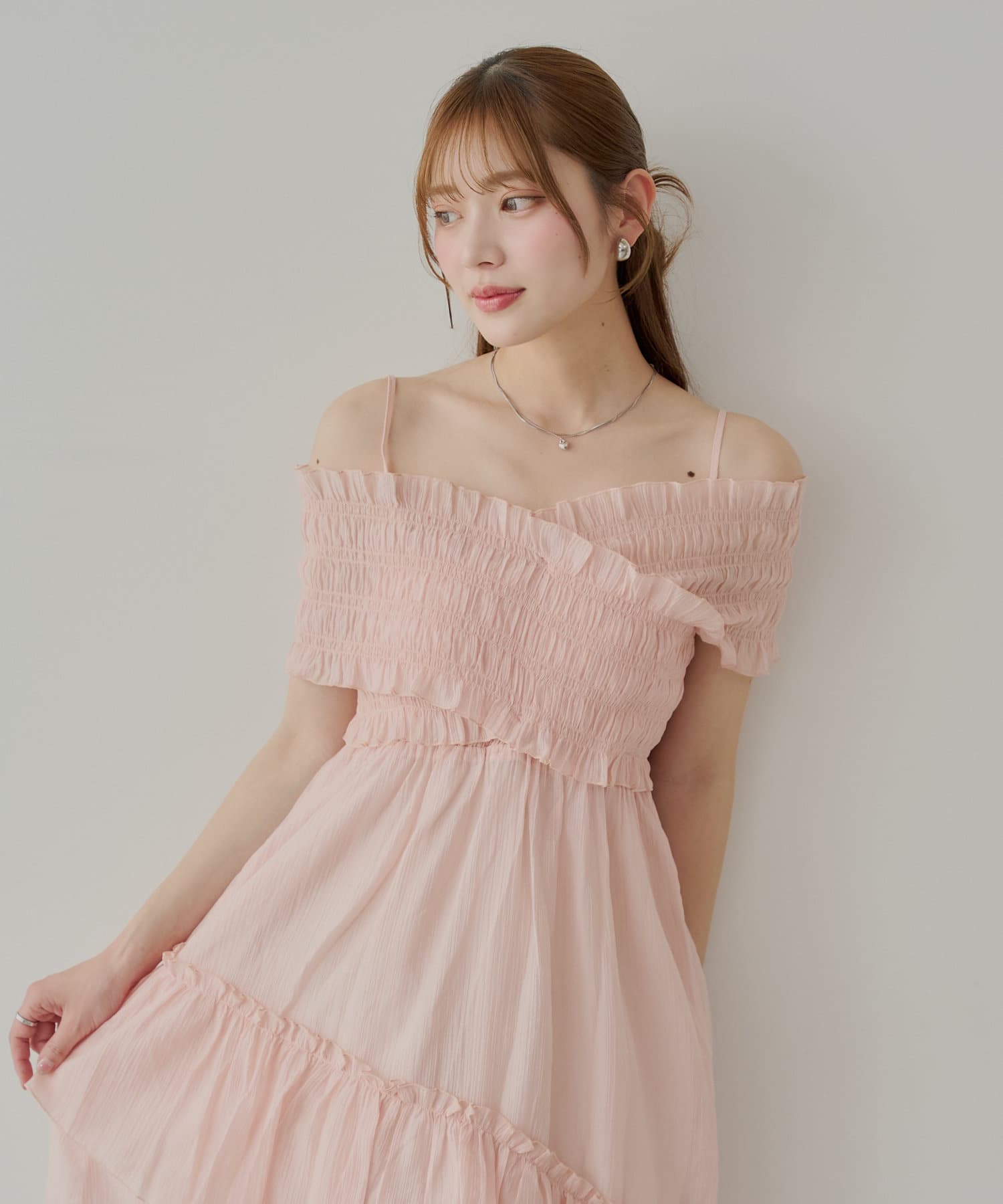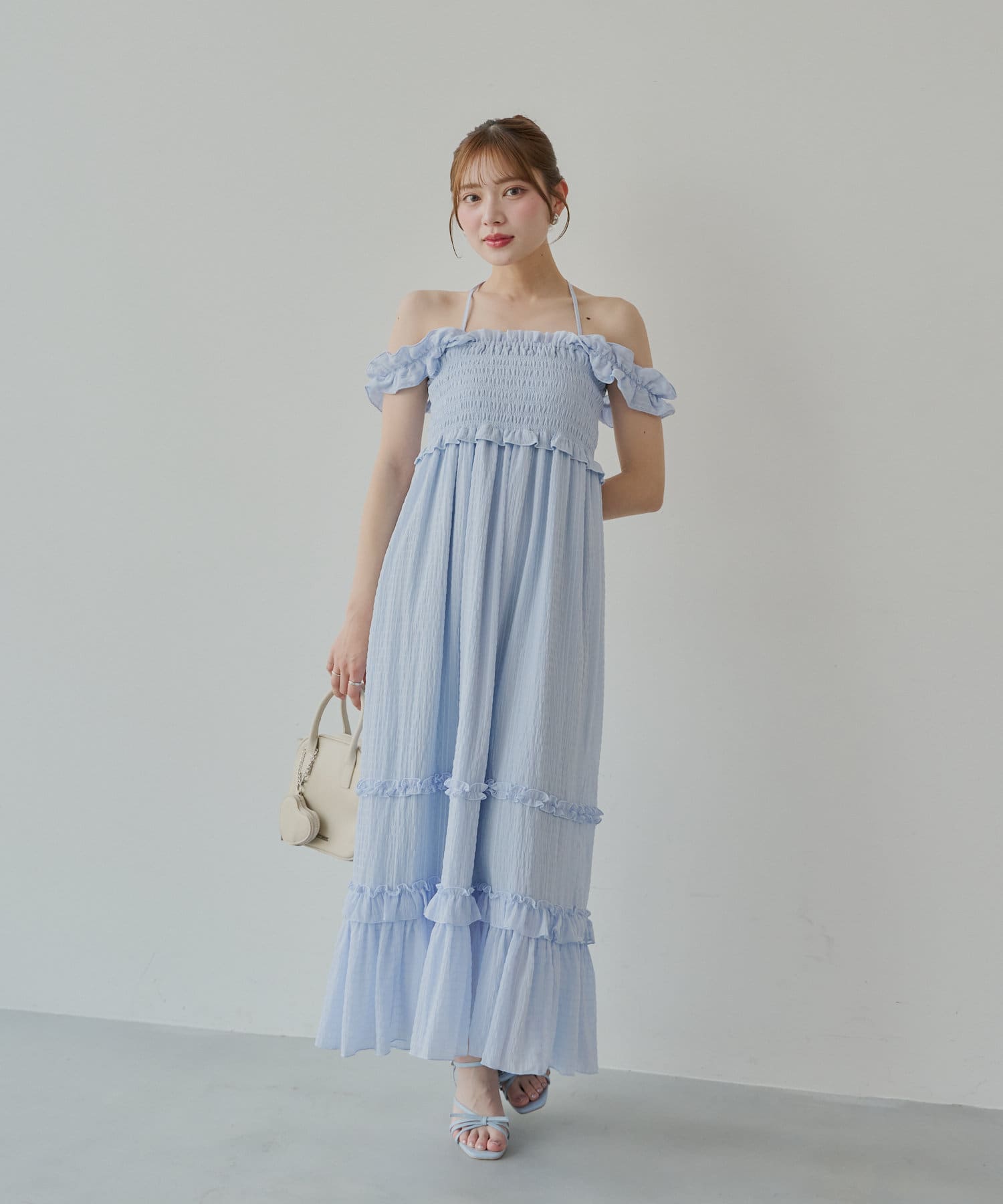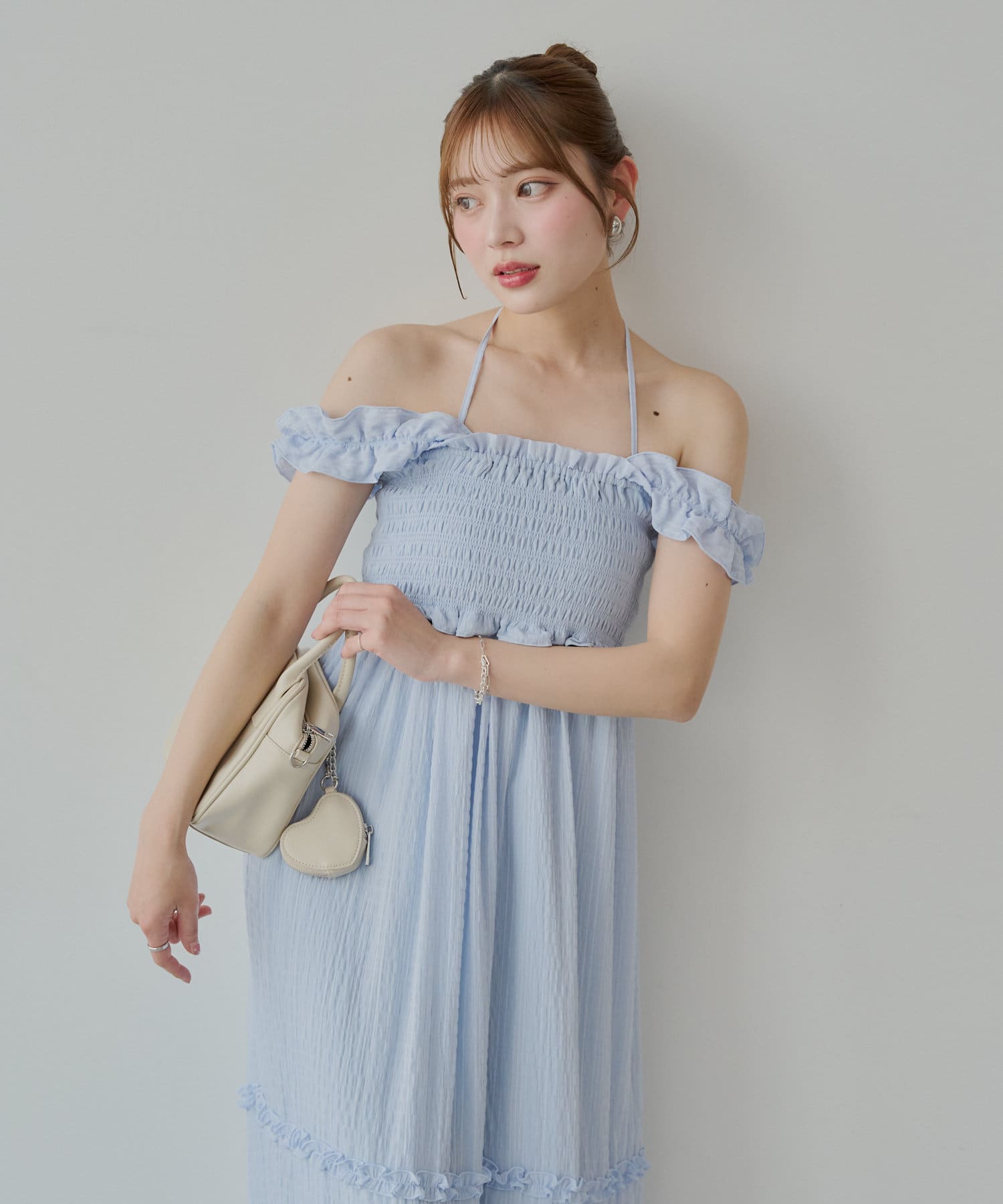 Chico換季6折無袖露肩多種穿法微皺感長版洋裝