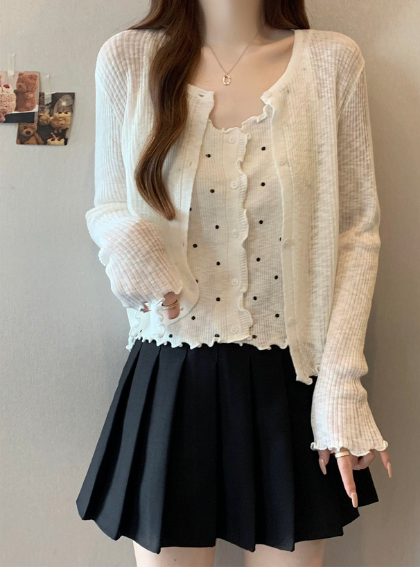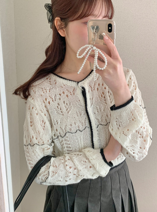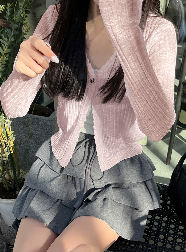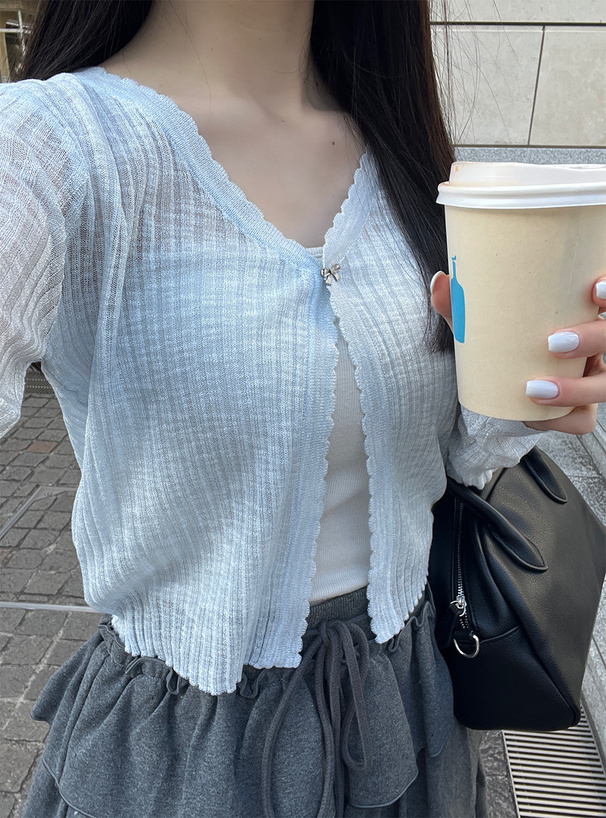 GRL蝴蝶結單釦小波浪滾邊針織外搭