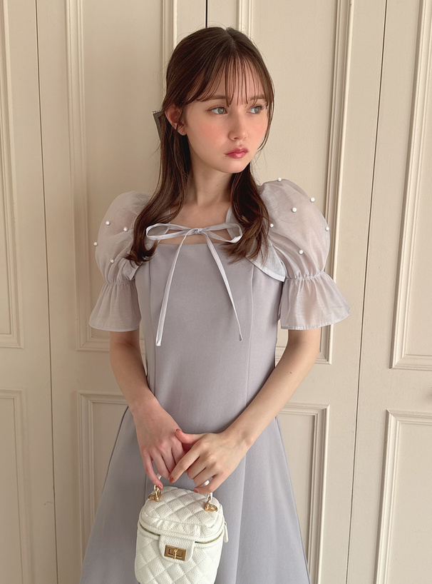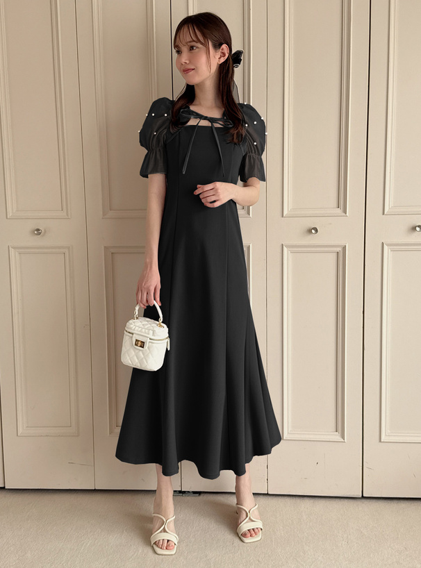 GRL氣質新款珍珠小蓬袖外搭+魚尾洋裝二件組