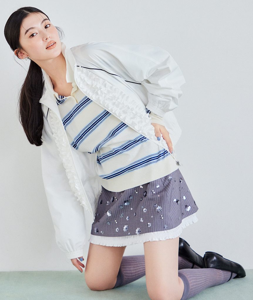 LILY BROWN抓摺滾邊亮片鑽花短裙