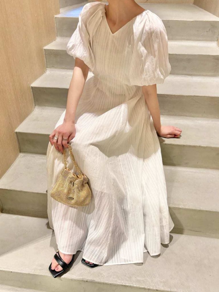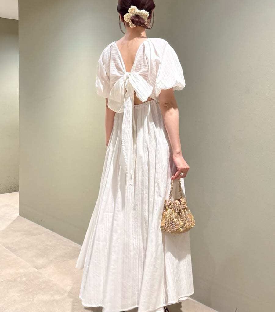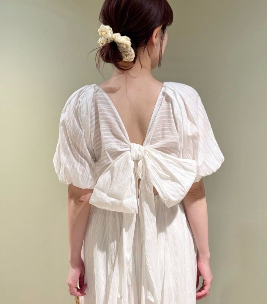 LILY BROWN後背大蝴蝶結泡泡袖洋裝