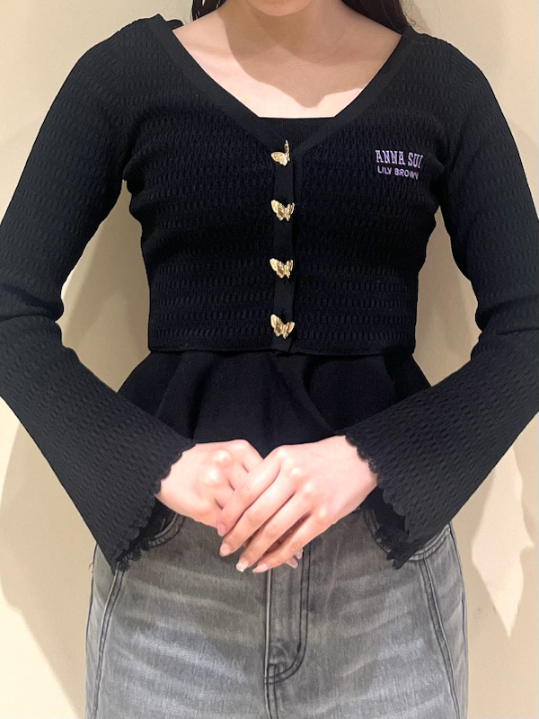 LILY BROWN ANNA SUI優雅蝴蝶結排釦針織小外搭