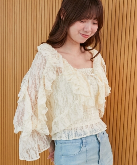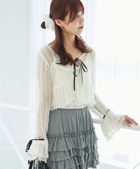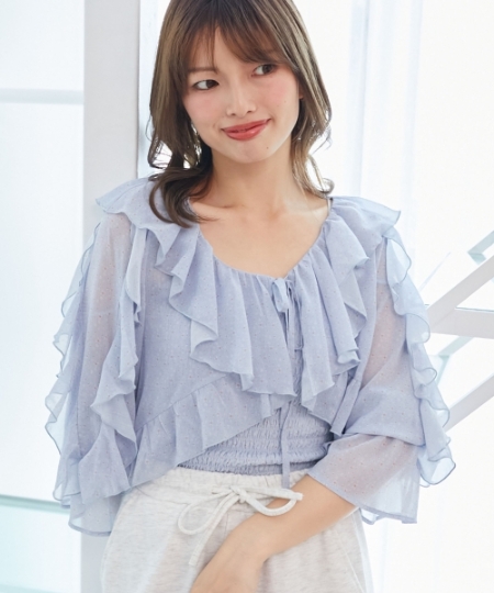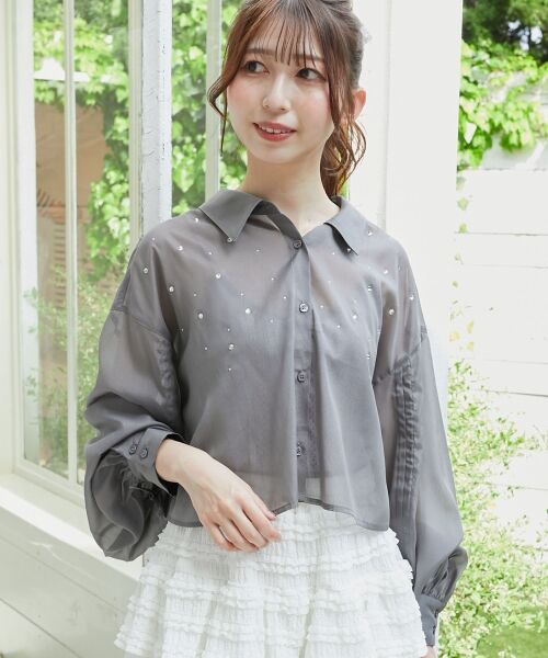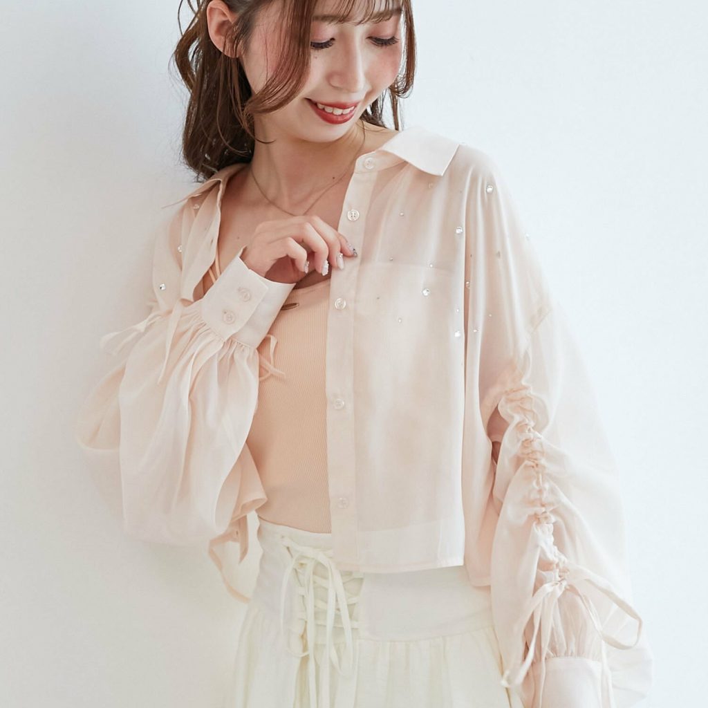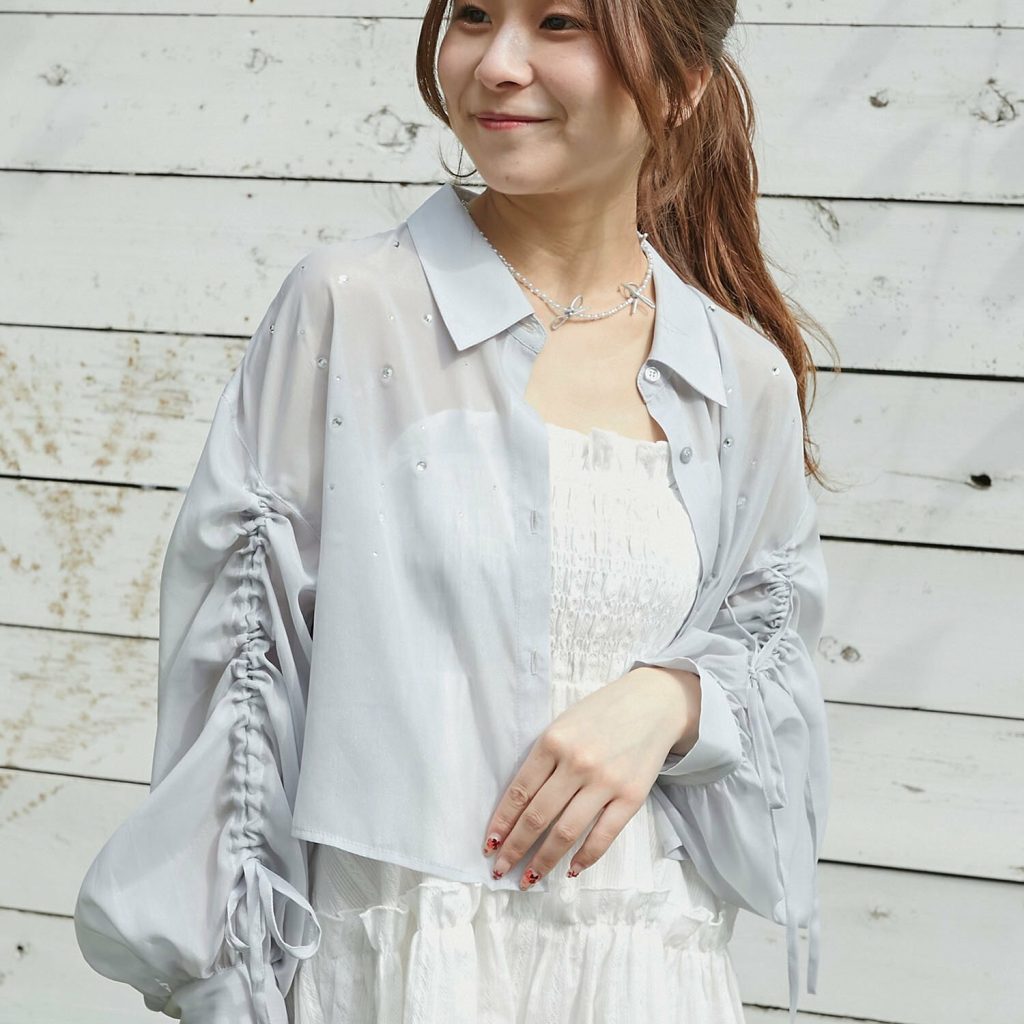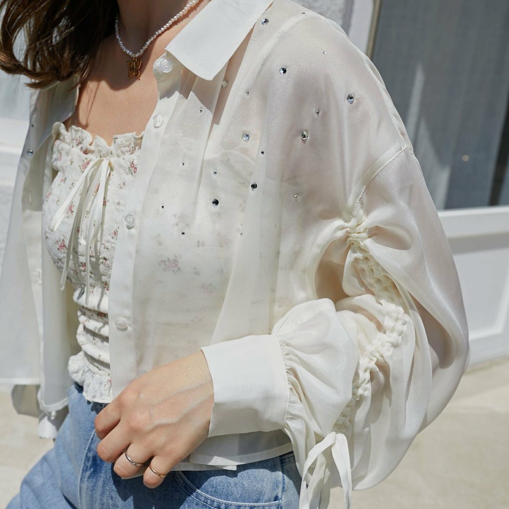Majestic Legon水鑽抽繩袖微透膚襯衫