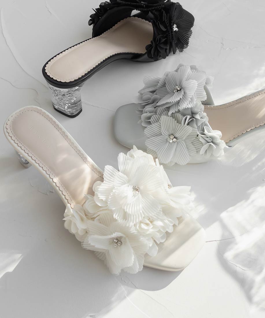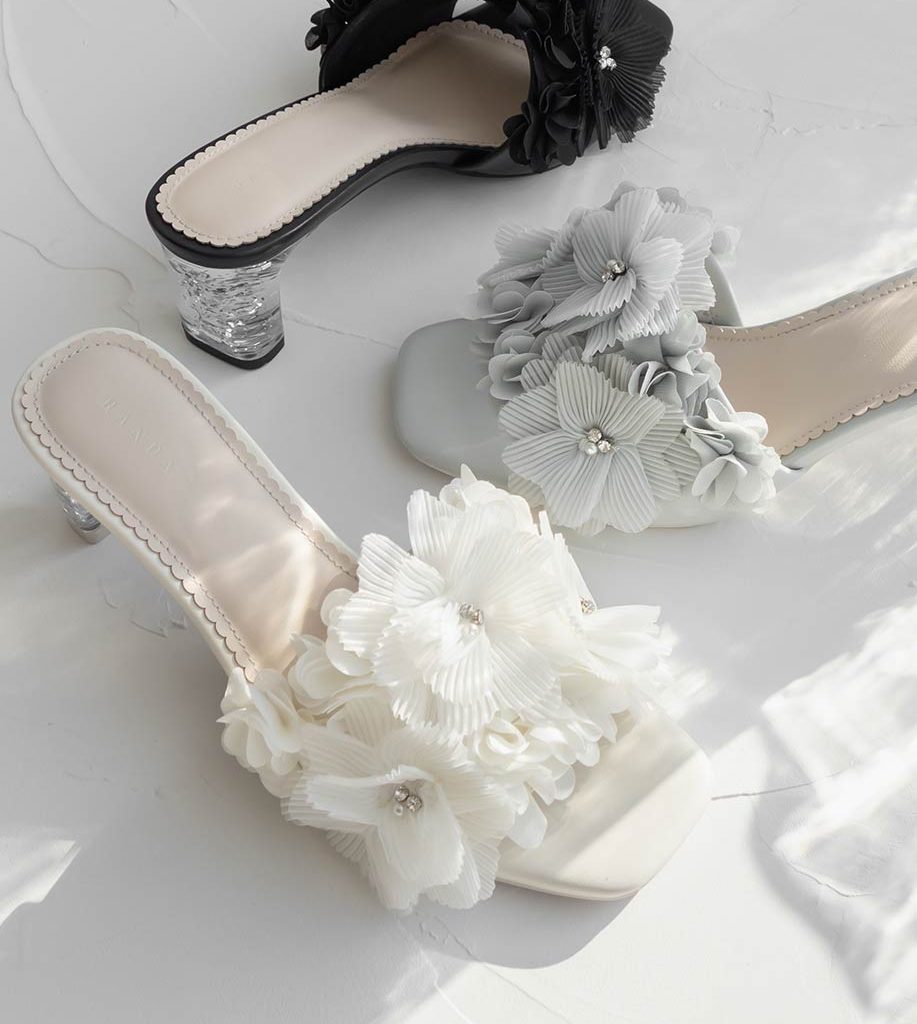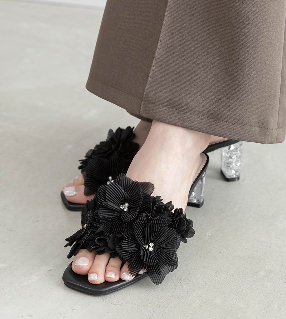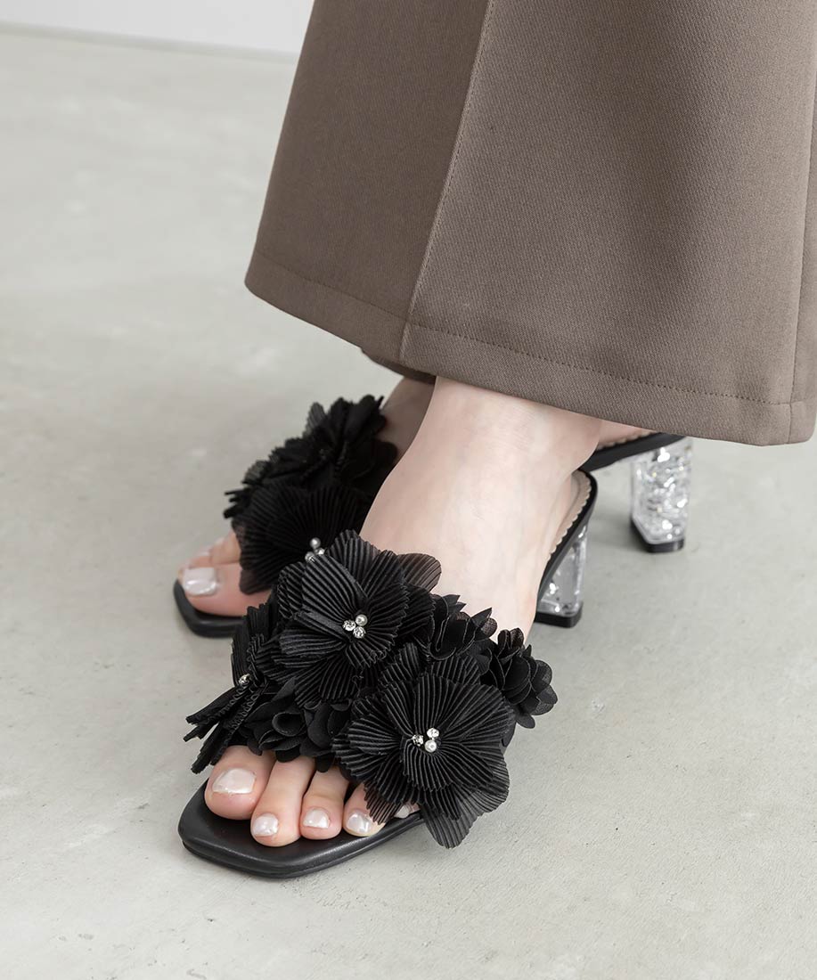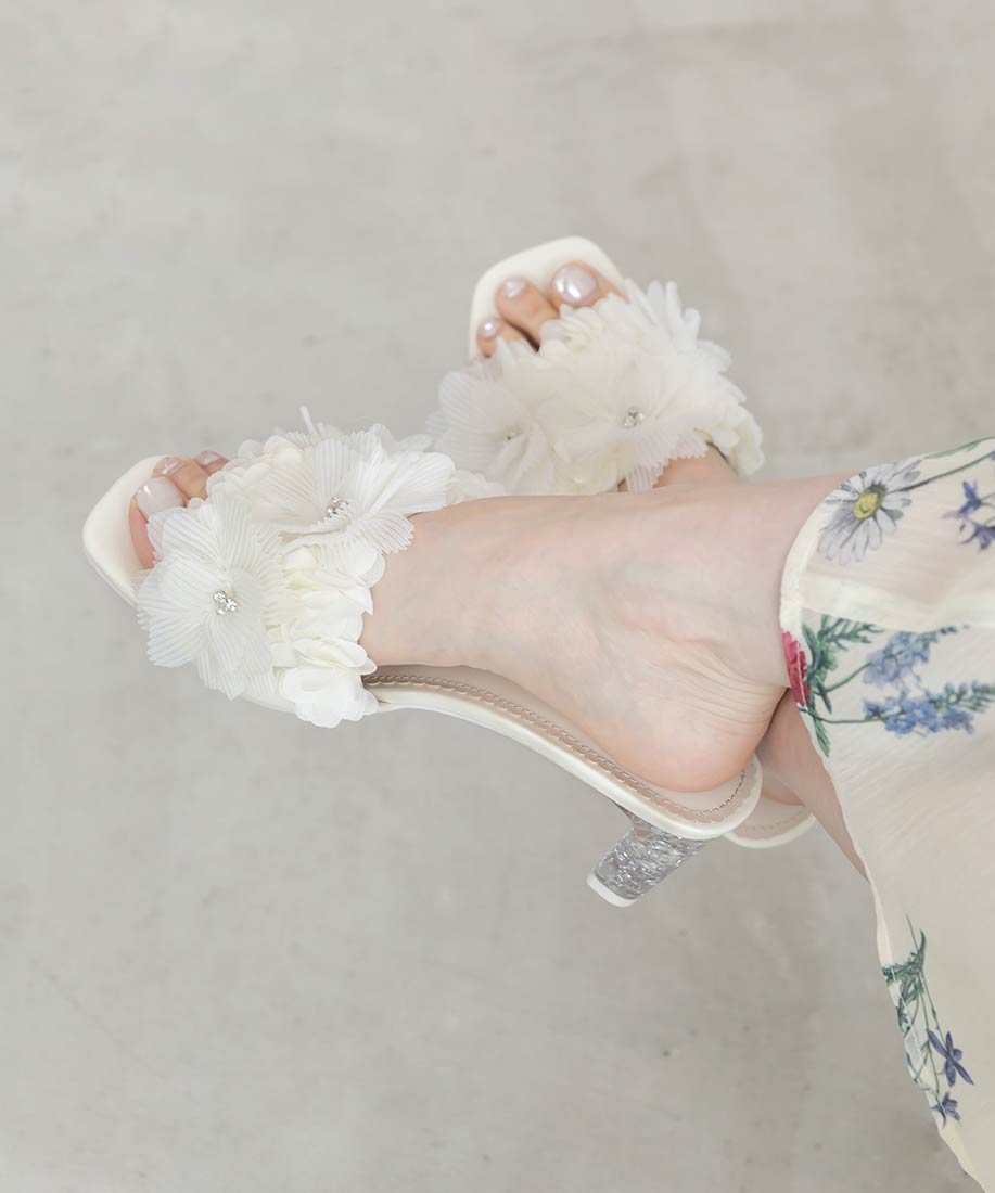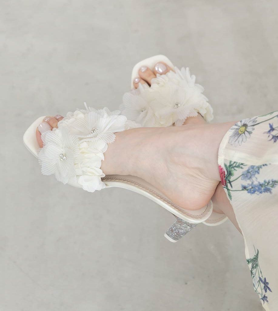 異素材花朵水鑽亮蔥跟涼鞋