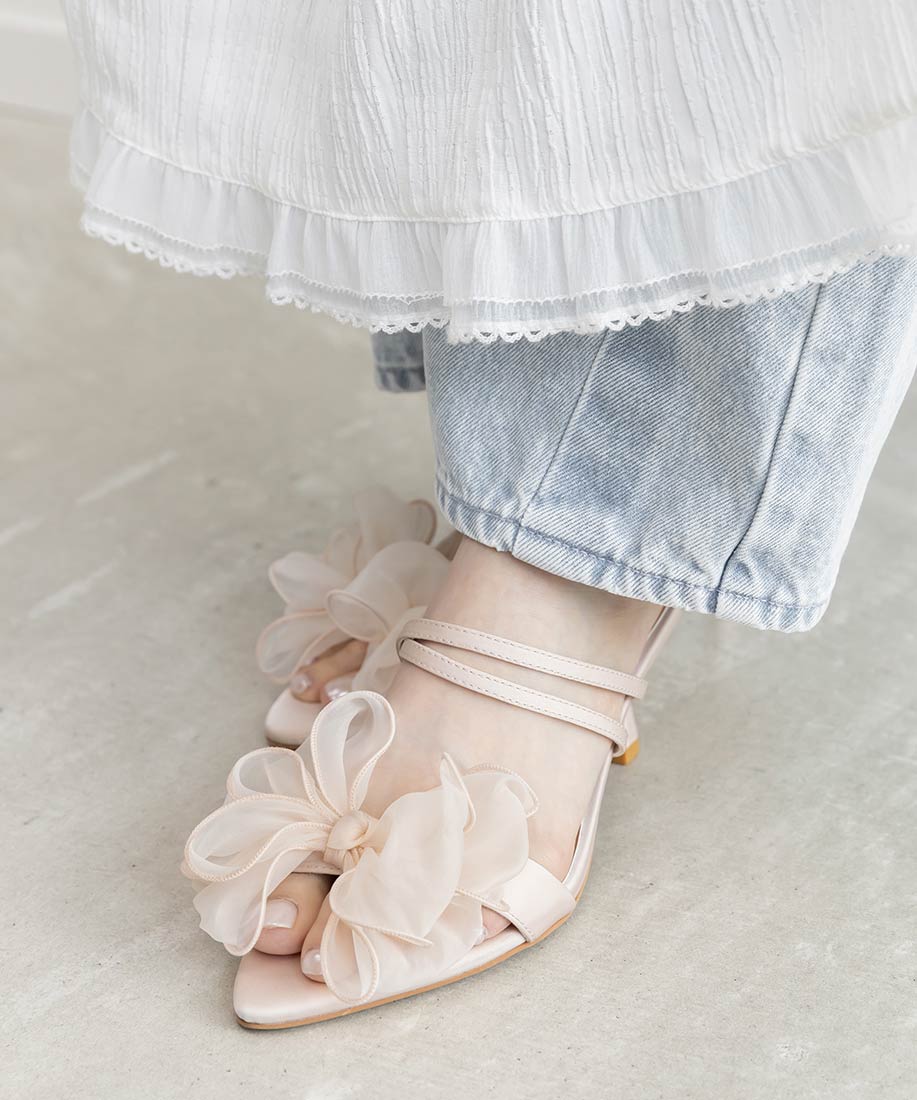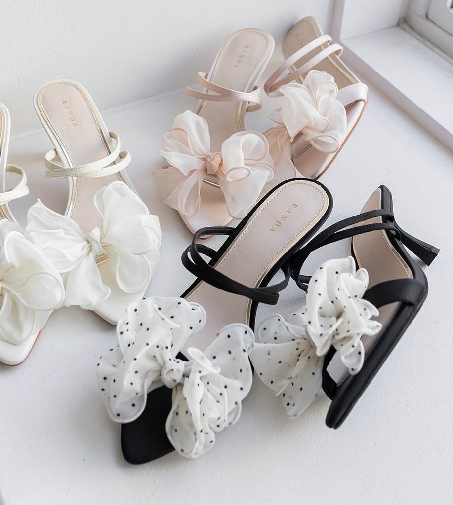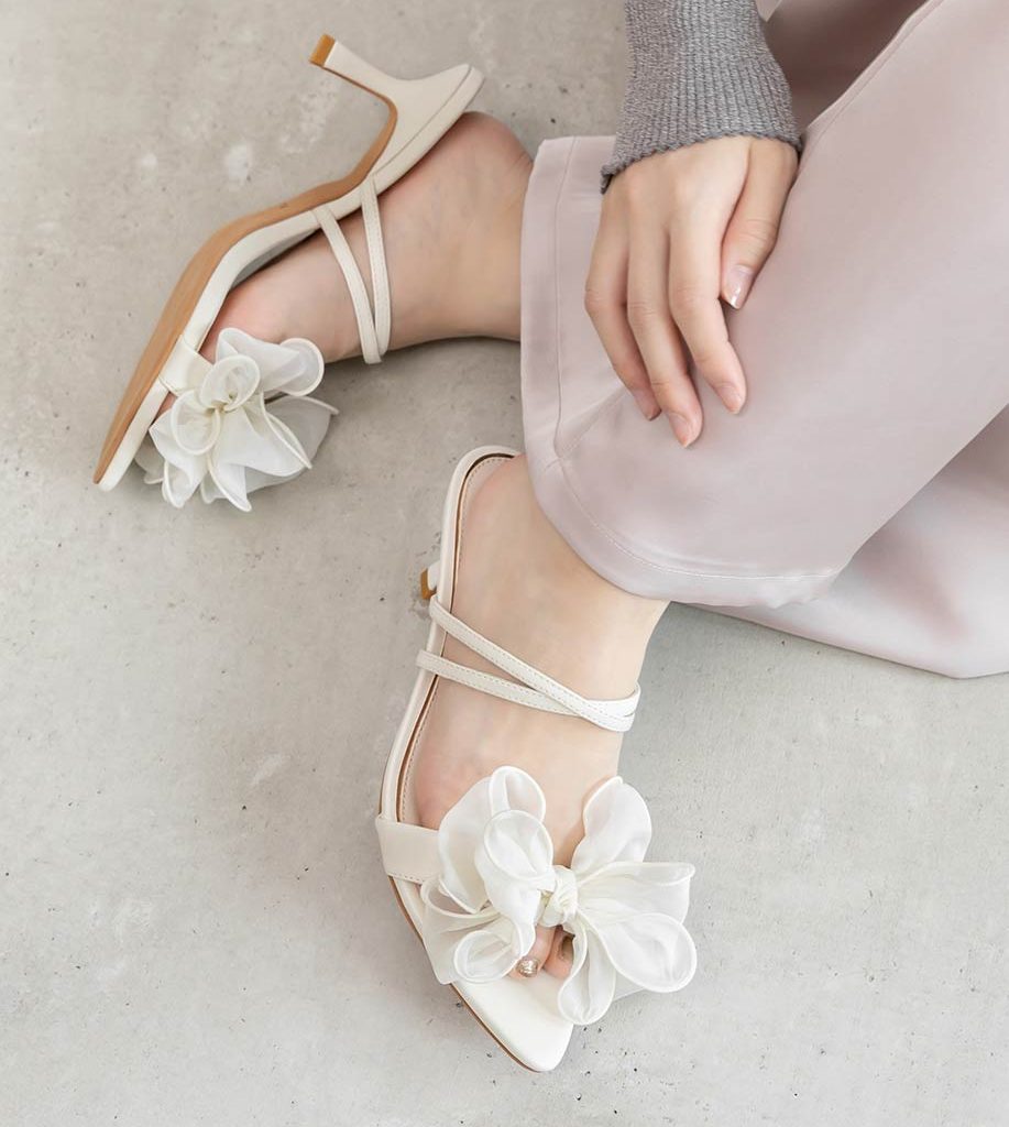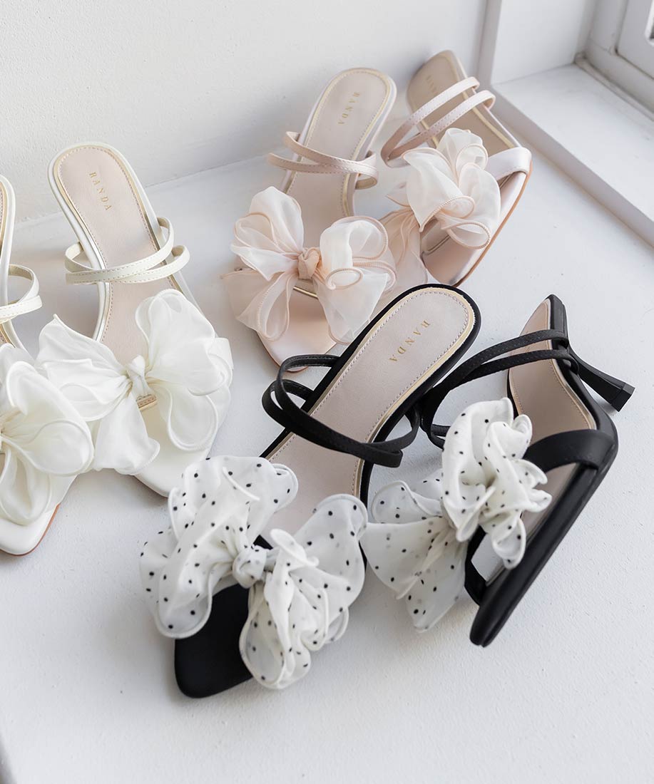 甜美雪紡紗蝴蝶結細跟涼鞋