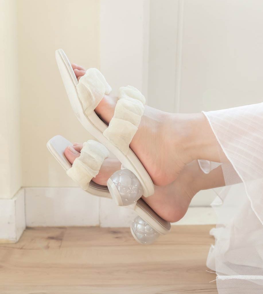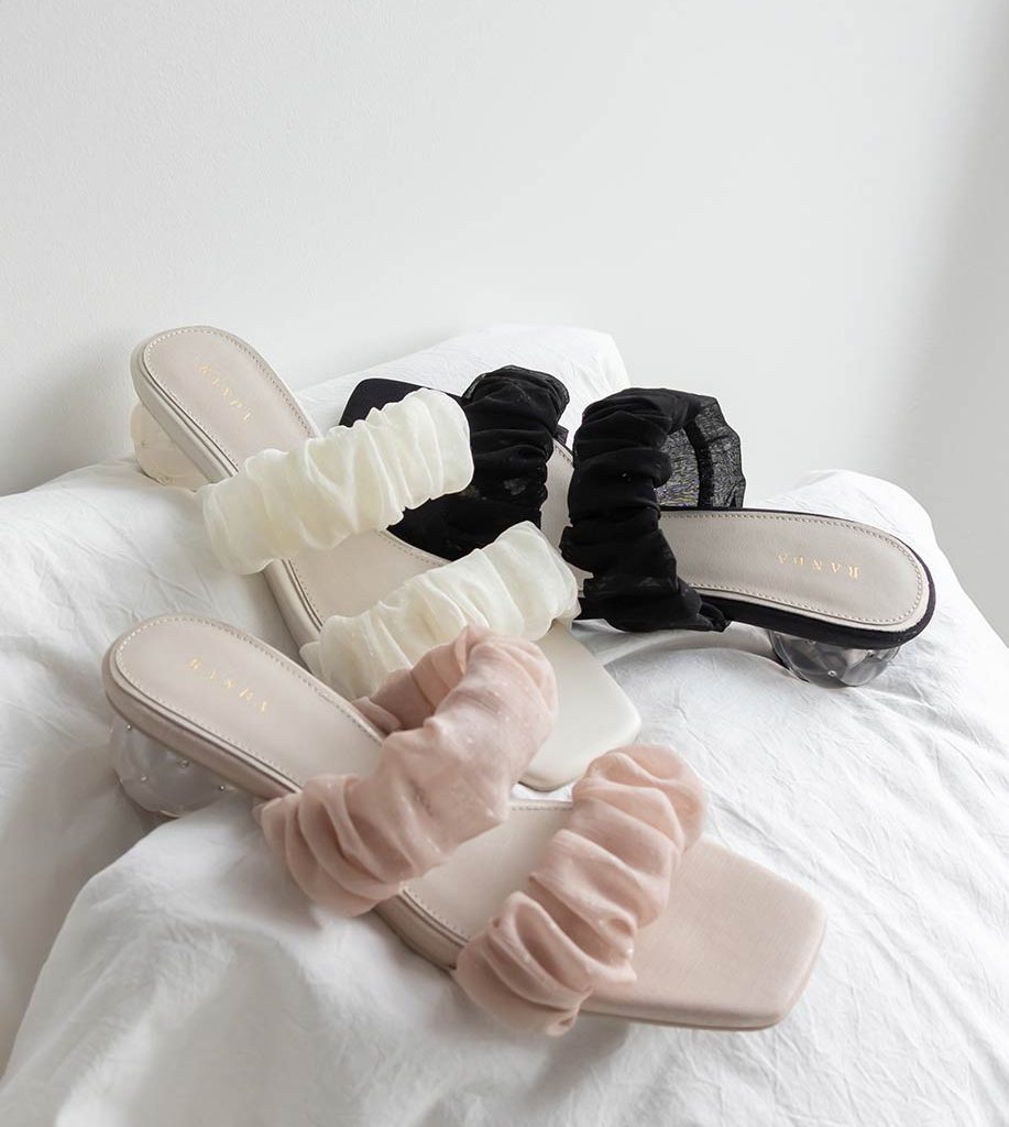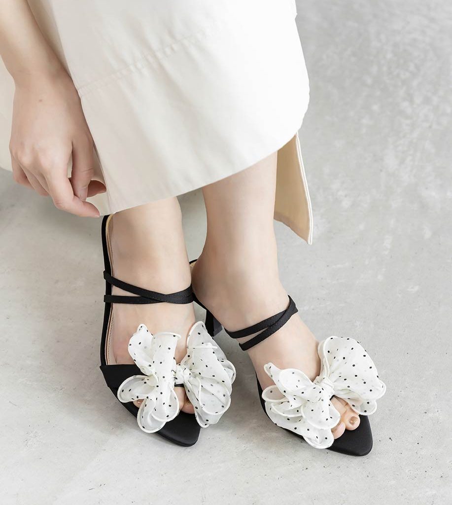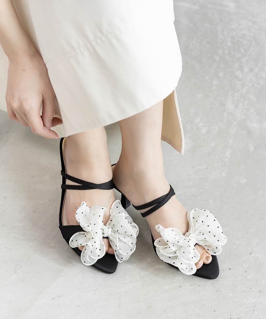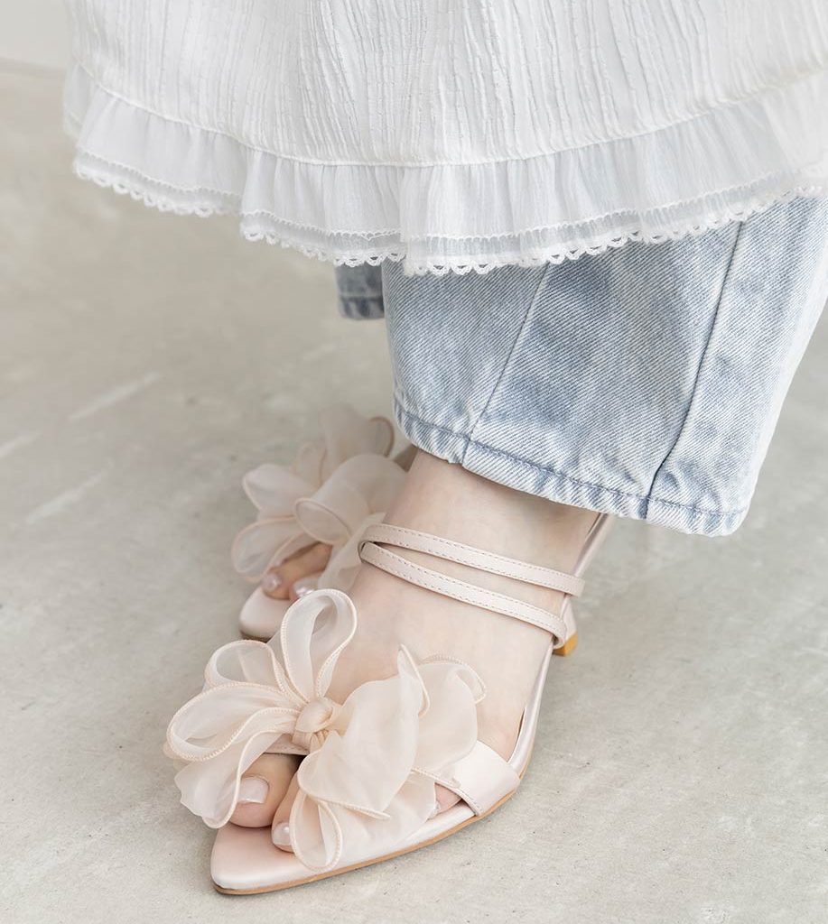 甜美雪紡紗蝴蝶結細跟涼鞋