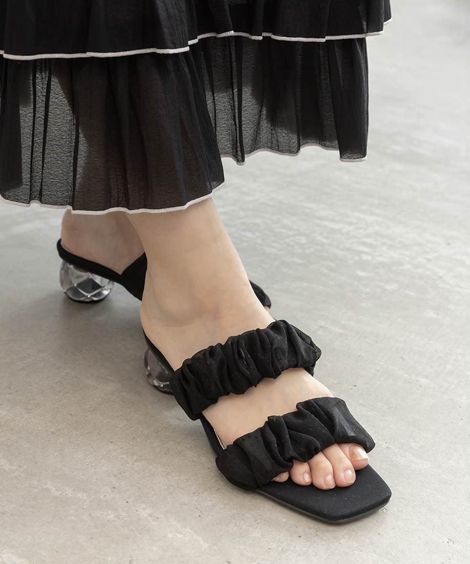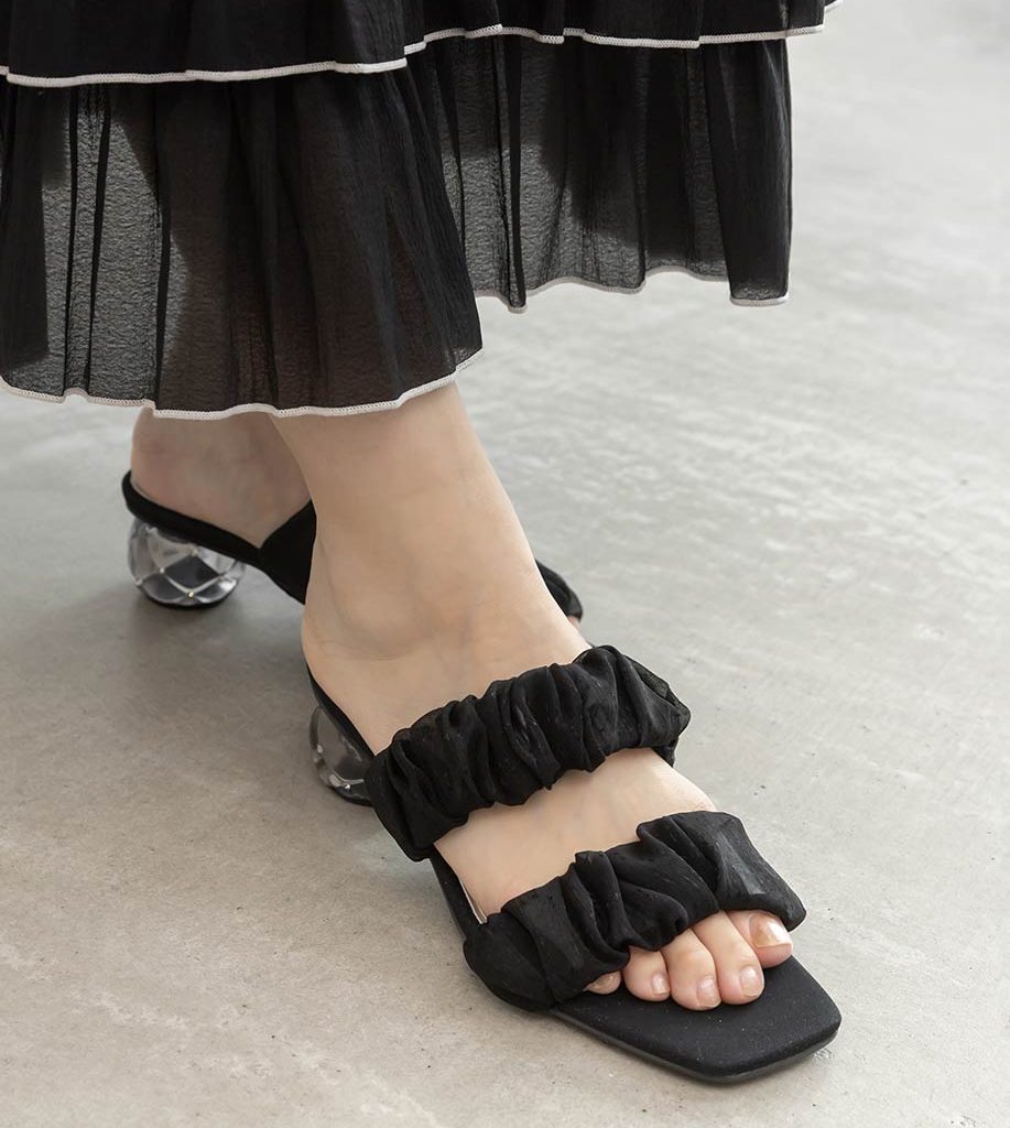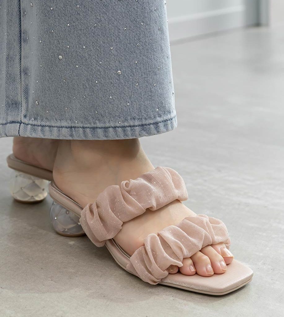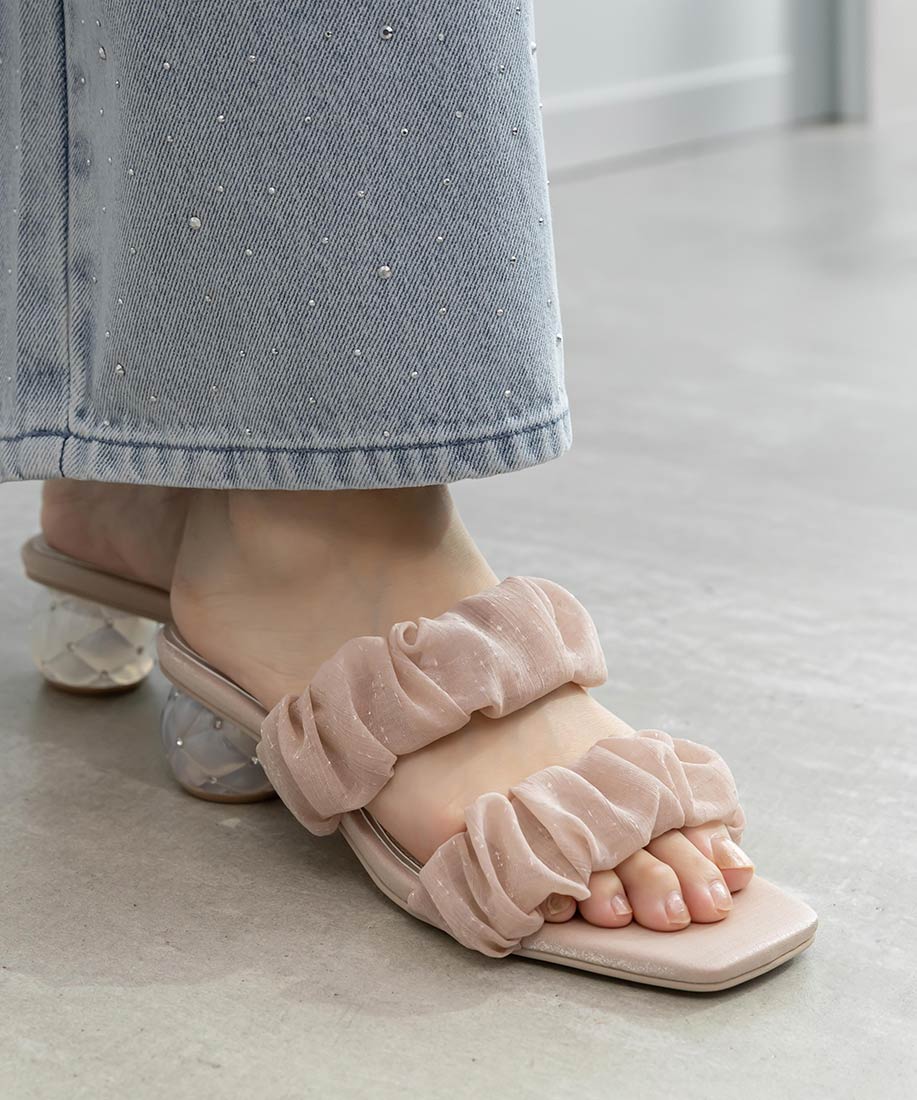 雪紡紗橫帶水鑽菱格圓跟涼鞋