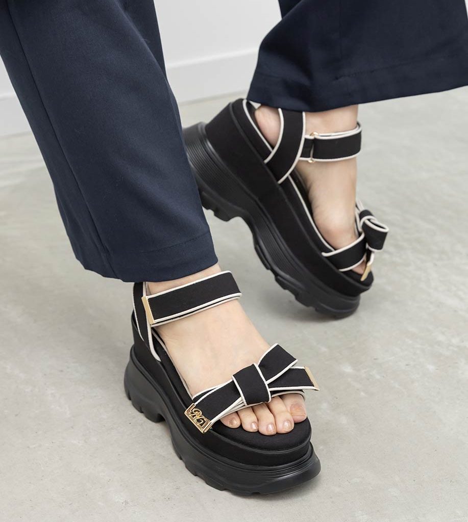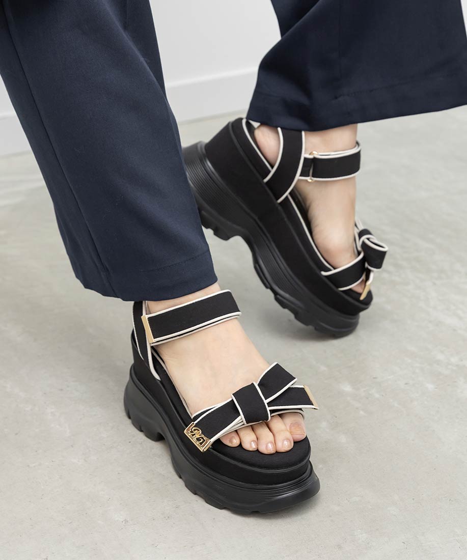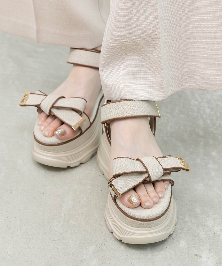 金屬LOGO點綴布面蝴蝶結厚底涼鞋