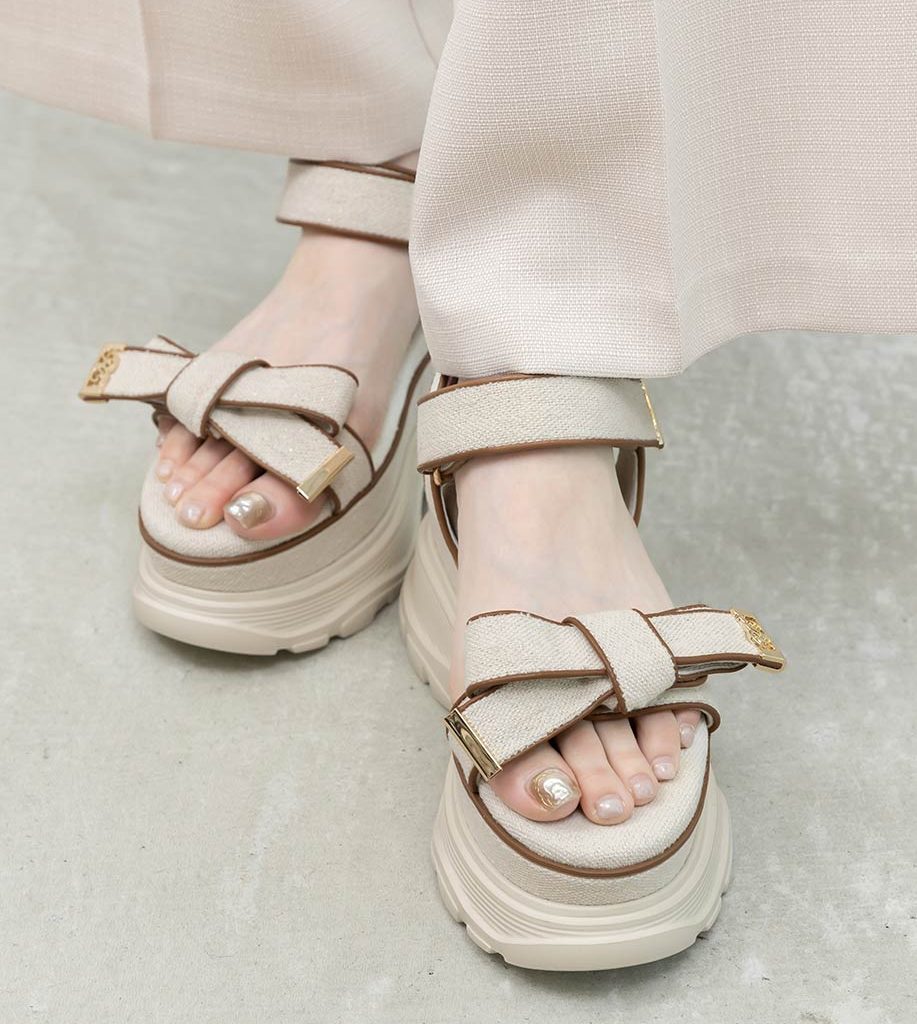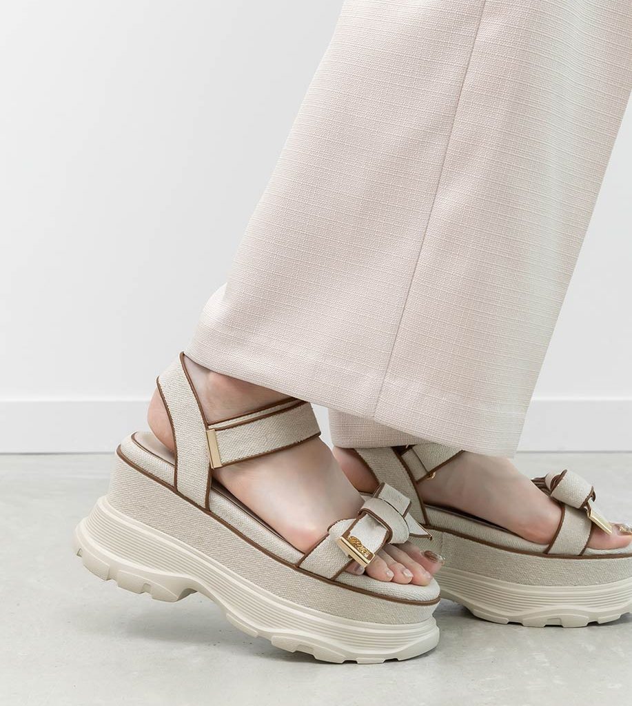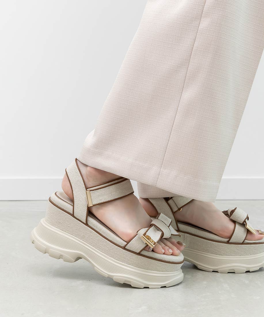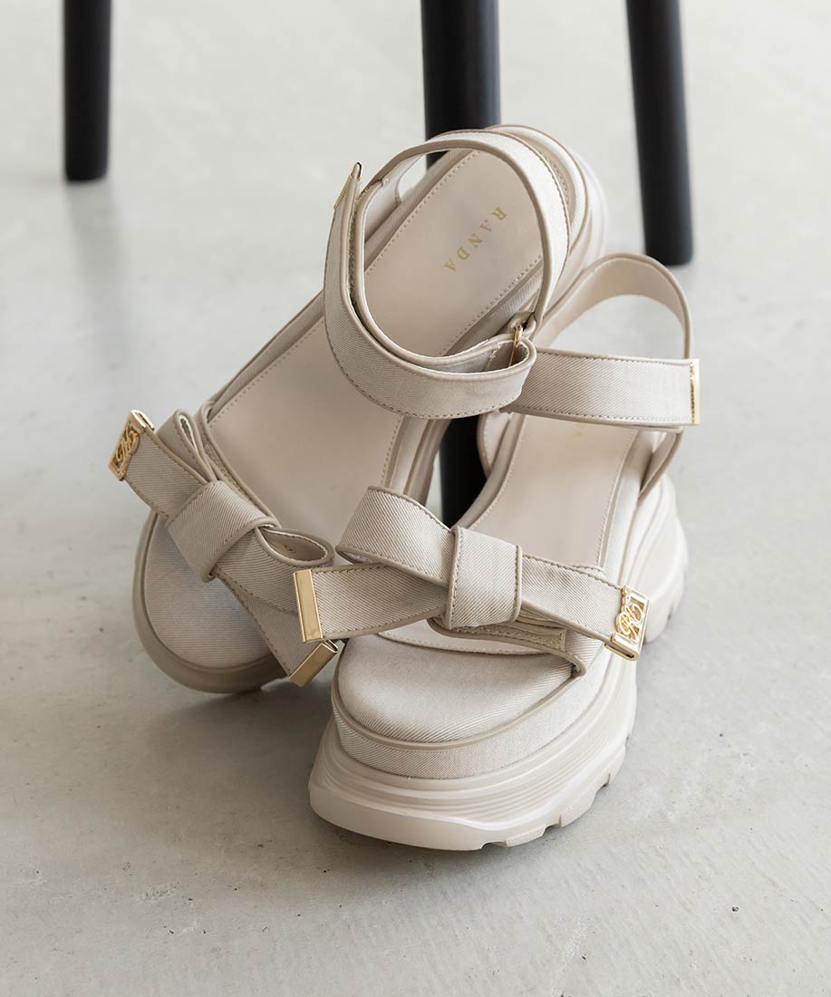 金屬LOGO點綴布面蝴蝶結厚底涼鞋