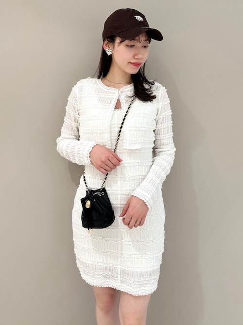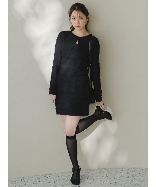 皺感橫紋雕花滾邊洋裝+外搭二件組