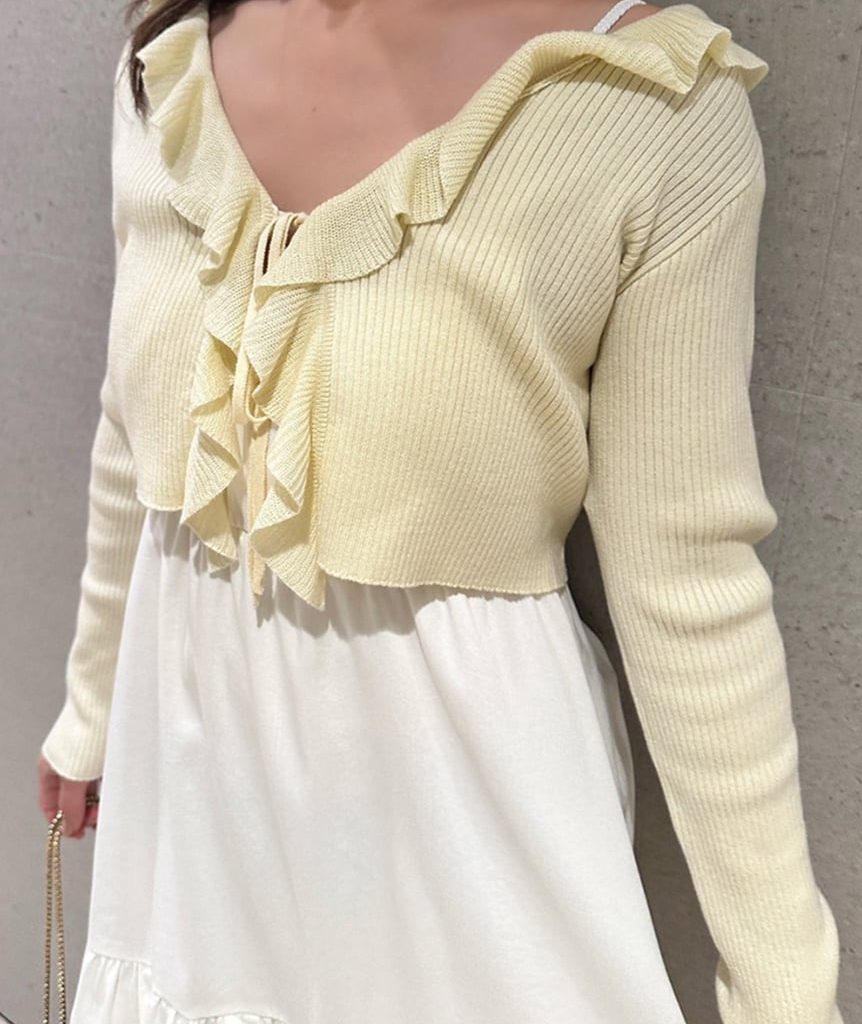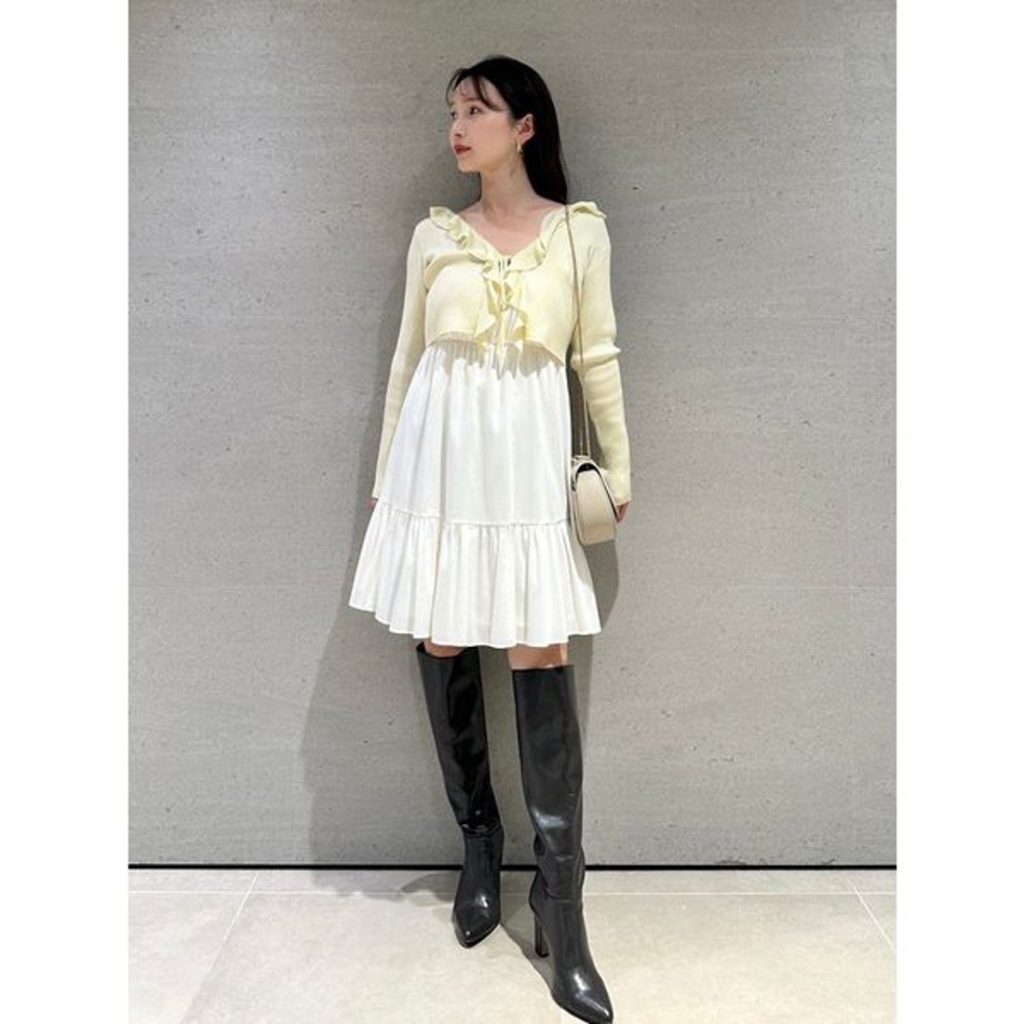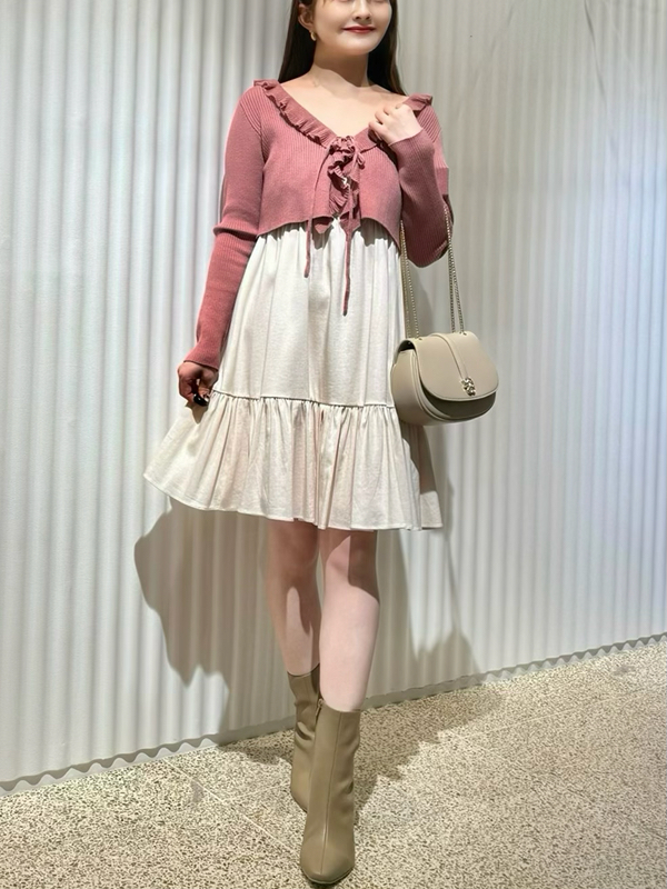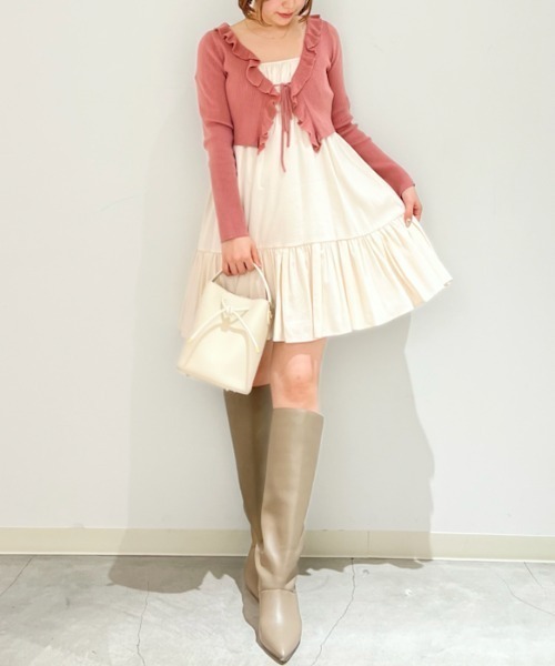 細肩帶平口洋裝+波浪領邊外搭二件組