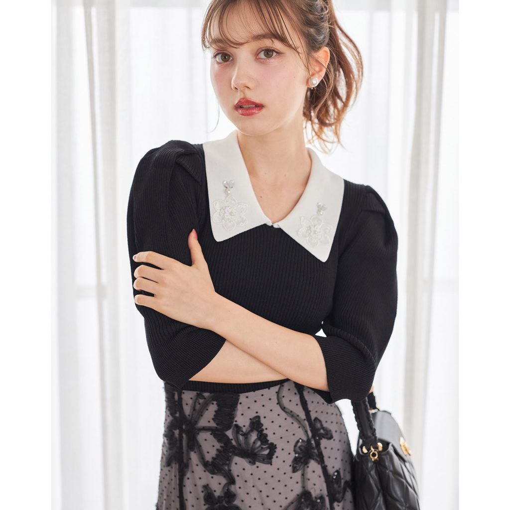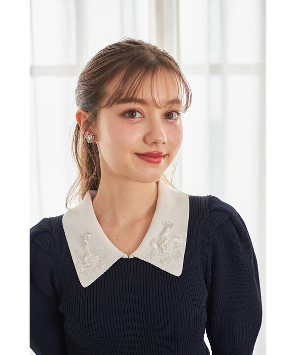 tocco closet典雅花領抓摺五分袖針織上衣