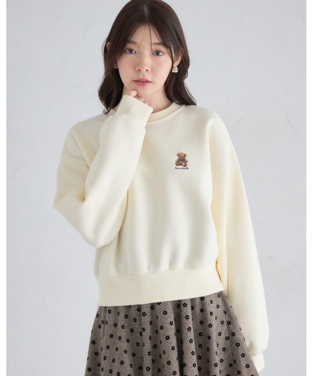 tocco closet甜美刺繡熊熊內刷毛圓領Tee
