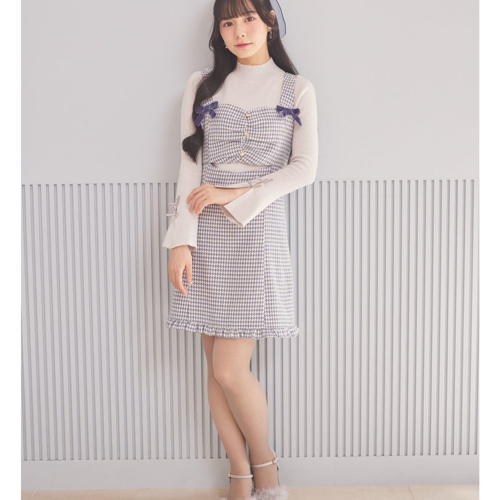 tocco closet腰間小鏤空後綁帶千鳥格洋裝